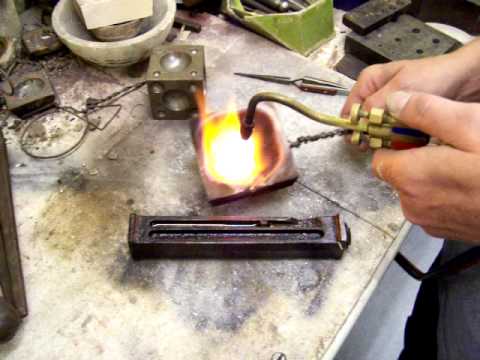 Outro passo é vitrificar o cadinho novo antes de usa-lo,para que o metal não fique grudado no cadinho.O processo é aquecer o cadinho e jogar pequenas porções de Bórax na parte interna do cadinho,o Bórax (trincal) fica igual um açúcar queimado e aí vai-se virando o cadinho para que esse "caramelo" escorra por toda a parte interna do cadinho.após isso pode-se fundir à vontade!